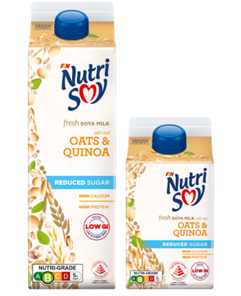 1. 60g NutriSoy Fresh Soya Milk with real Oats & Quinoa Reduced Sugar